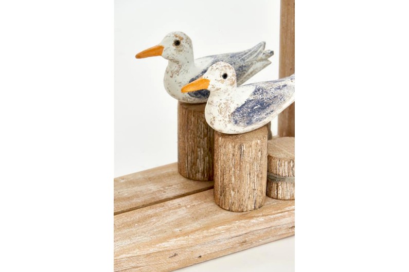 Espelho com moldura em madeira natural, feito à mão, com um bonito pássaro integrado no espelho.