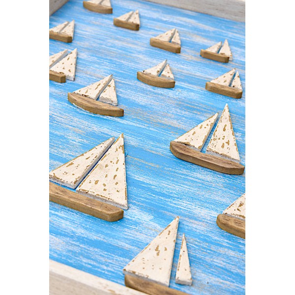 Quadro decorativo de madeira marinho. É um bom barco de recife está.