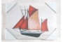 Cópia da pintura do marinheiro. Reprodução de uma pintura de veleiro marítimo impressa em um pano de algodão e montada em uma armação de madeira.