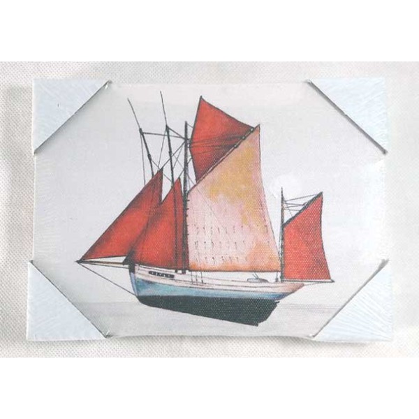 Cópia da pintura do marinheiro. Reprodução de uma pintura de veleiro marítimo impressa em um pano de algodão e montada em uma armação de madeira.