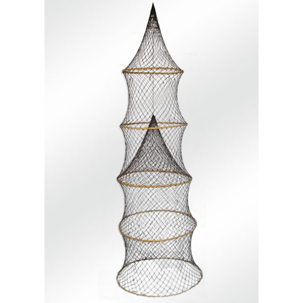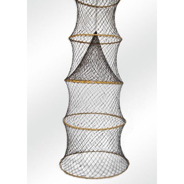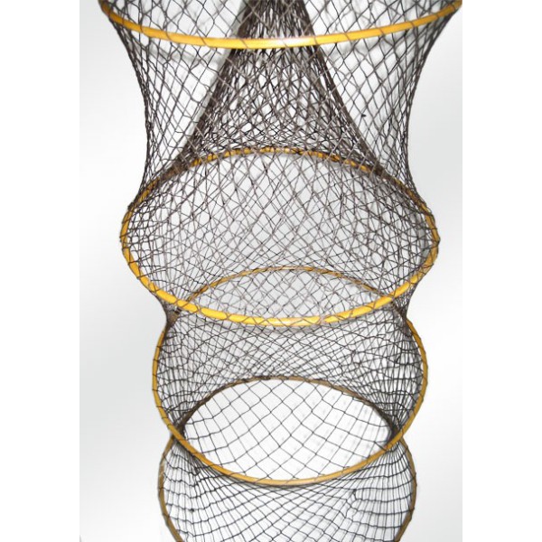 Nasa acordeão feito com rede de pesca, e 5 anéis de vime. Muito utlizada em lagoas, especialmente para a pesca do peixe-gato e do Mediterrâneo para o fundo pecez e caranguejos. Bom decorativo objeto para criar um ambiente marinho.