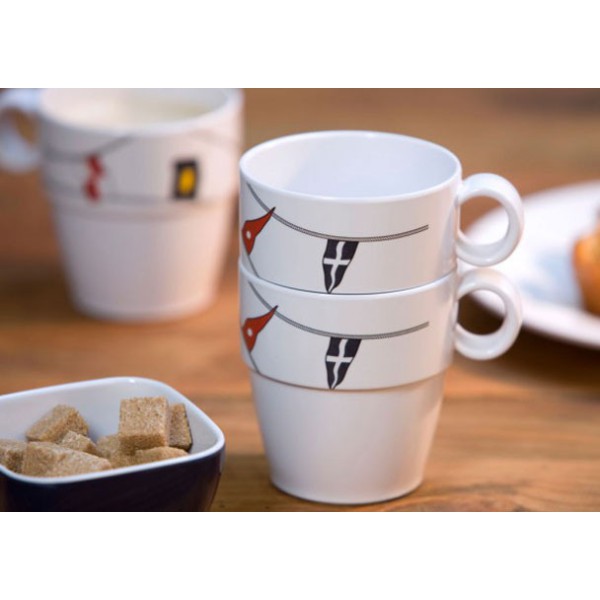 Conjunto de 6 unidades de taças de belo desenho e bandeiras brancas.