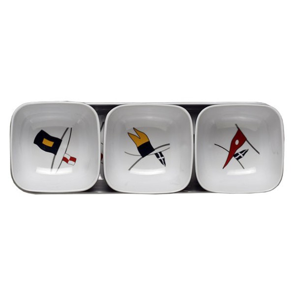 Set 3 unidades de bols para lanches mais bandeja de belo desenho e bandeiras brancas.