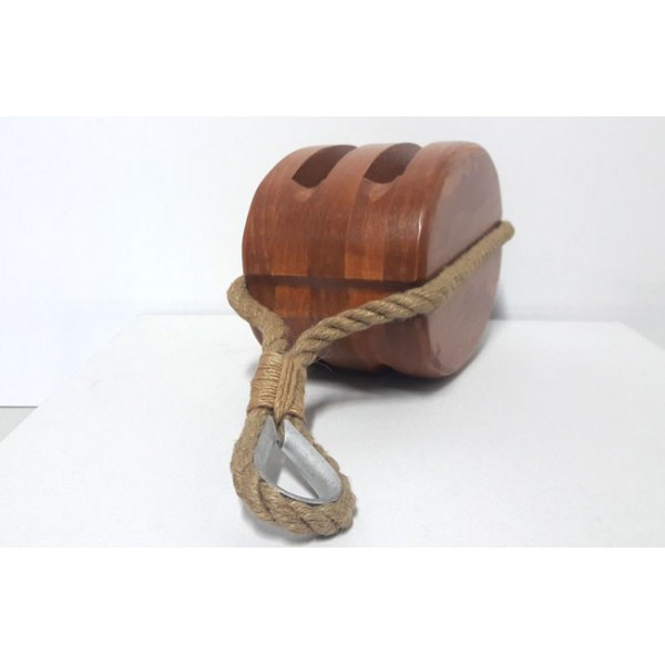 Réplica de uma polia dois olhos de marítimos décor, feito de madeira.