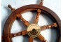Reprodução uma roda do leme artesanal de direção usado nos grandes veleiros do século XIX. Roda do leme decorativa com oito braços feitos de pau-rosa com o centro de bronze bucha.