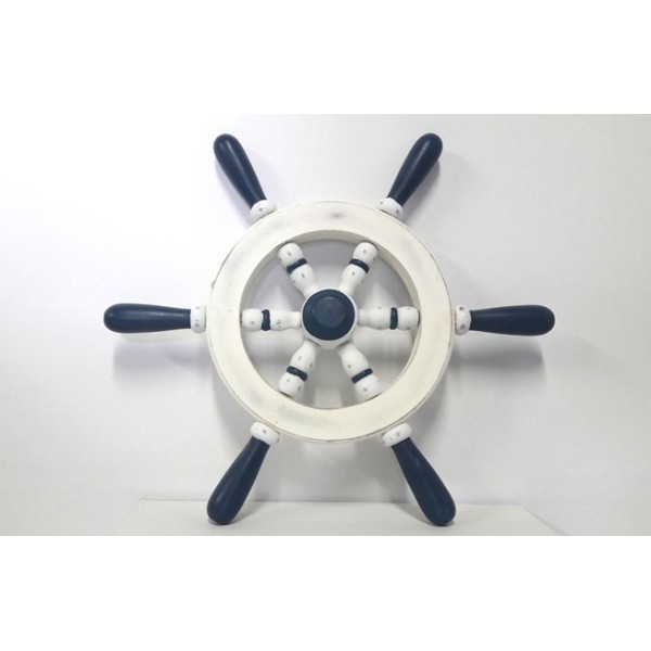 Roda de leme decorativa com 6 braços feitos de pau-rosa com o centro de bronze bucha.