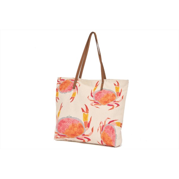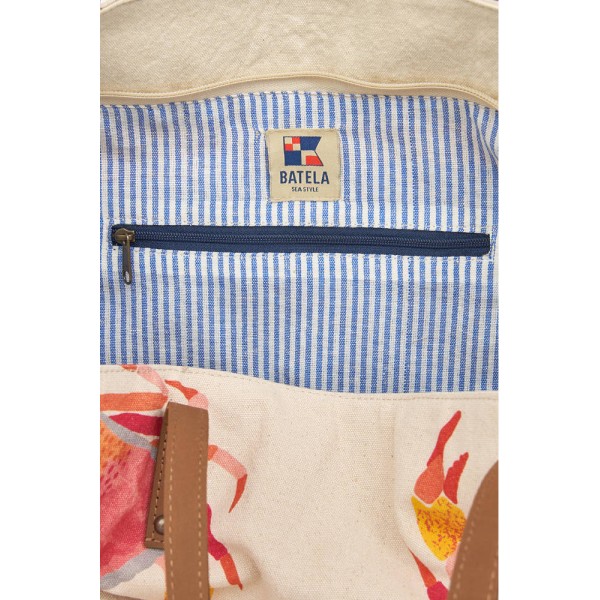 Bonita mala "caranguejo" feita em algodão, com alças em pele.