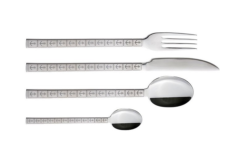 Conjunto de 24 peças faca, garfo, colher e colher de sobremesa.