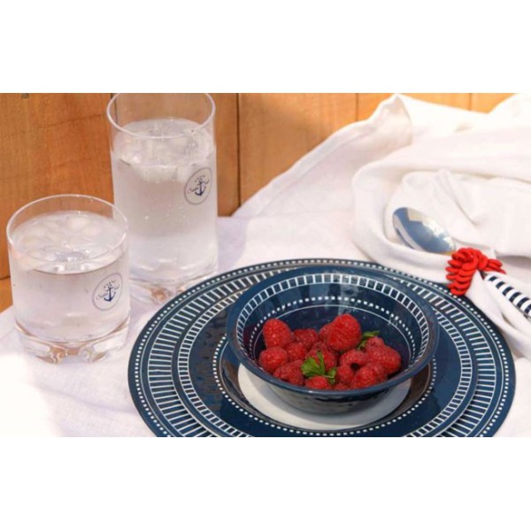 Conjunto de 16 peças, incluindo: 4 pratos rasos, 4 pratos fundo, 4 pratos de sobremesa, 4 taças mais saco de transporte.